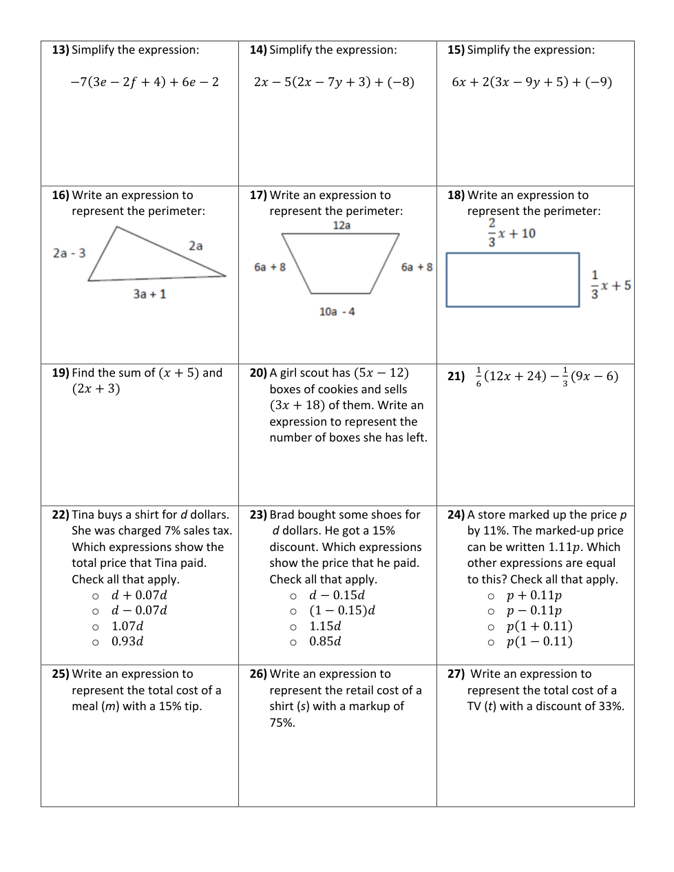 I will know I am successful when:*I can remember what I have learned about Expressions & Equations to be ready for RISE.
