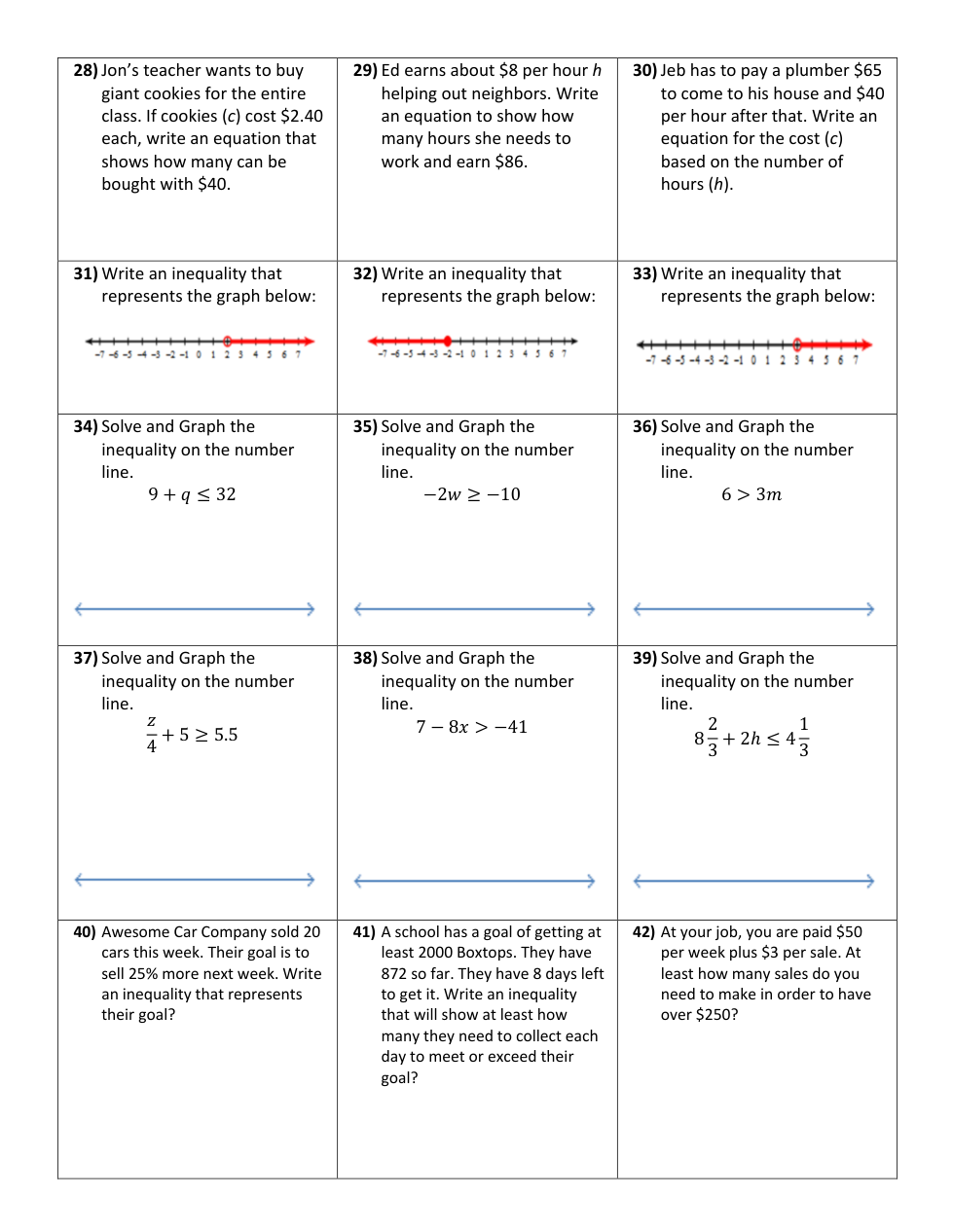Type your answer from your worksheet. Remember to include the letter when solving and equation or inequality.
