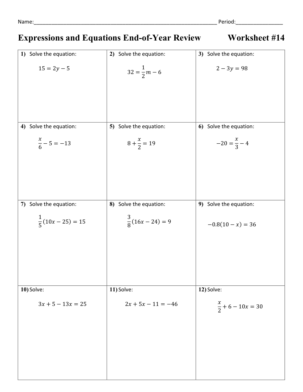 745LRIS WS#14 (Blue) Expression & Equation Review