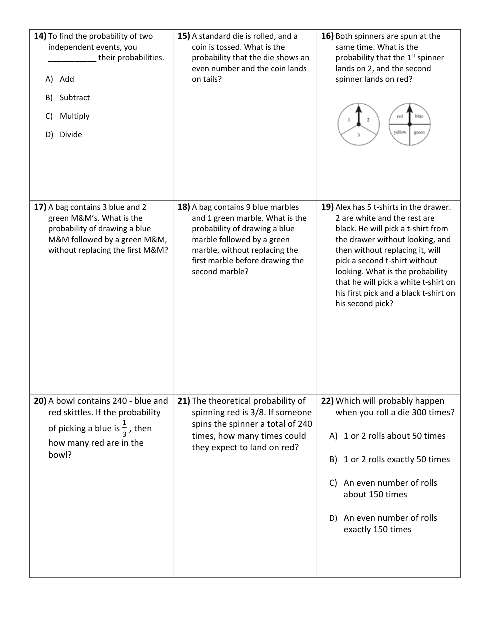 I will know I am successful when:*I can remember what I have learned about Probability to be ready for RISE.