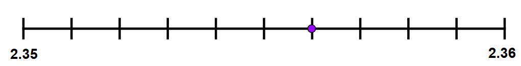 Determine the value of the 🟣 on the number line and write your answer in decimal form.