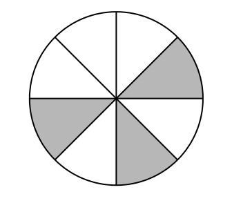 In which model is the fraction of the whole shaded to represent the fraction 3/8?