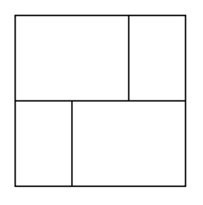 Which square appears to be divided into parts that each have an area of 1/4 of the whole?