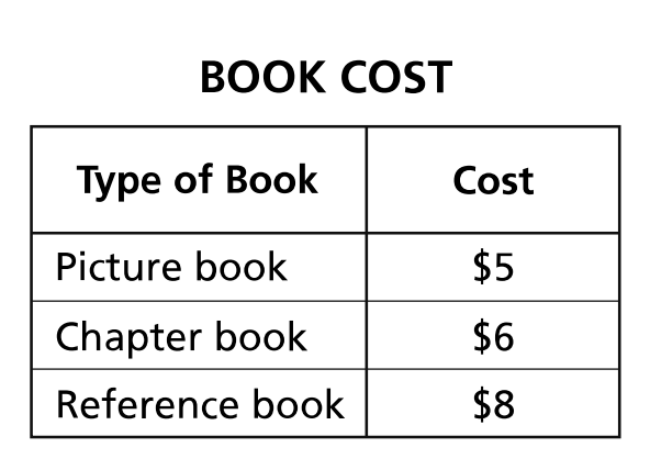 A librarian is ordering new books. The cost of one book of each type is shown below.