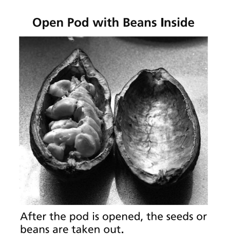 14 (2.) The beans are separated from the pods. Most cacao is farmed by small producers in remote parts of the world. Machines can damage cacao trees. Most of the work is done by hand.
