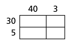 An incomplete area model is shown below. The area model can be used to represent the product of 35 and 43.