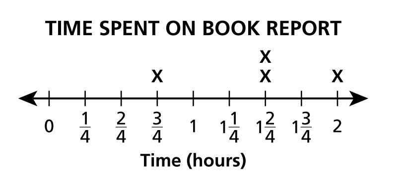 The line plot below shows the amount of time Jamie spent working on his book report each day for four days.