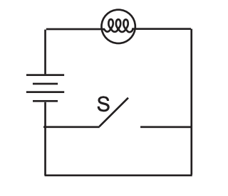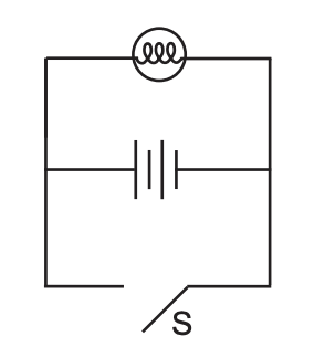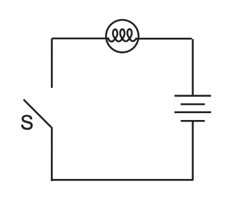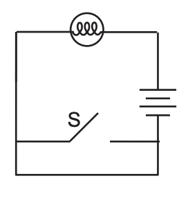 Which circuit diagram contains a lamp that will not have current passing through it until switch S is closed?