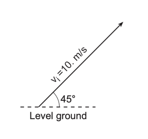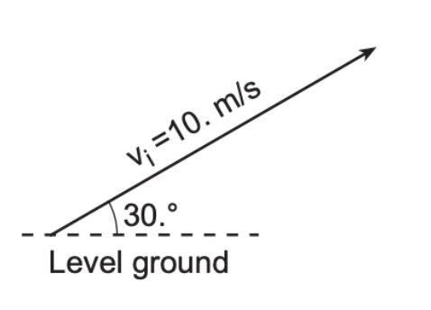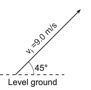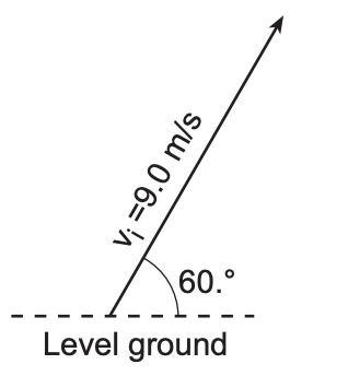 The diagrams below represent the initial velocities, v_i, of four identical projectiles launched from level ground at various angles above the horizontal. Which projectile will have the longest time of flight? [Neglect friction.]