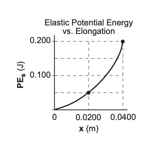 The graph below represents the relationship between the potential energy stored in a spring, PE_s, and the elongation of the spring, x.