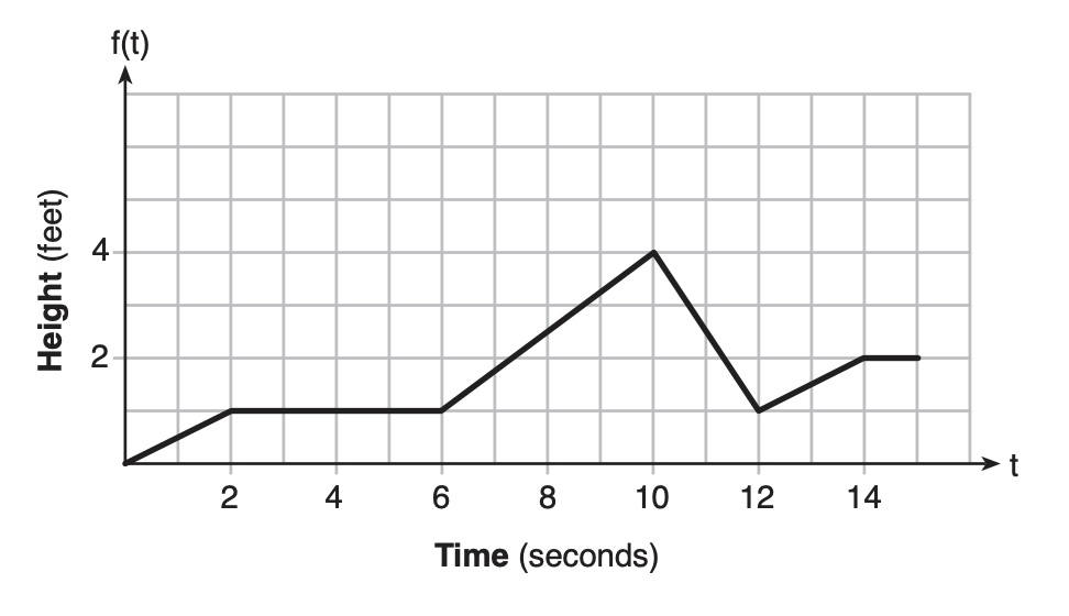 The graph of f(t) models the height, in feet, that a bee is flying above the ground with respect to the time it traveled in t seconds.