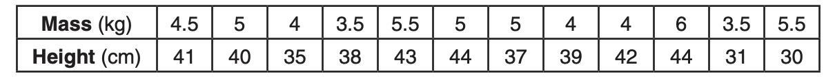 The data given in the table below show some of the results of a study comparing the height of a certain breed of dog, based upon its mass.