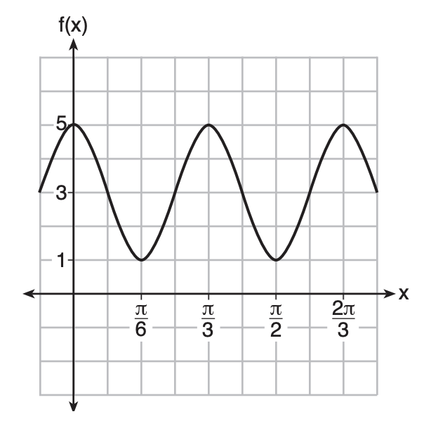The function f(x) = a \cos{bx} + c is plotted on the graph shown below.