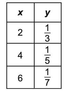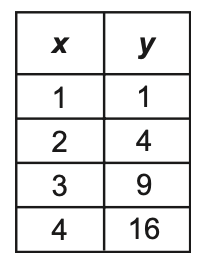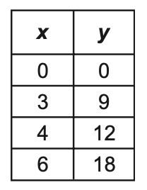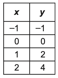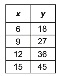 Select the two representations that show x and y in a proportional relationship.