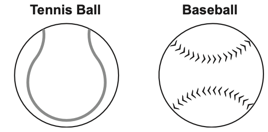 One student observed that the tennis ball and baseball looked similar in size. However, the tennis ball and baseball traveled different distances when hit with a plastic golf club. The drawing compares the size of a tennis ball and the size of a baseball.