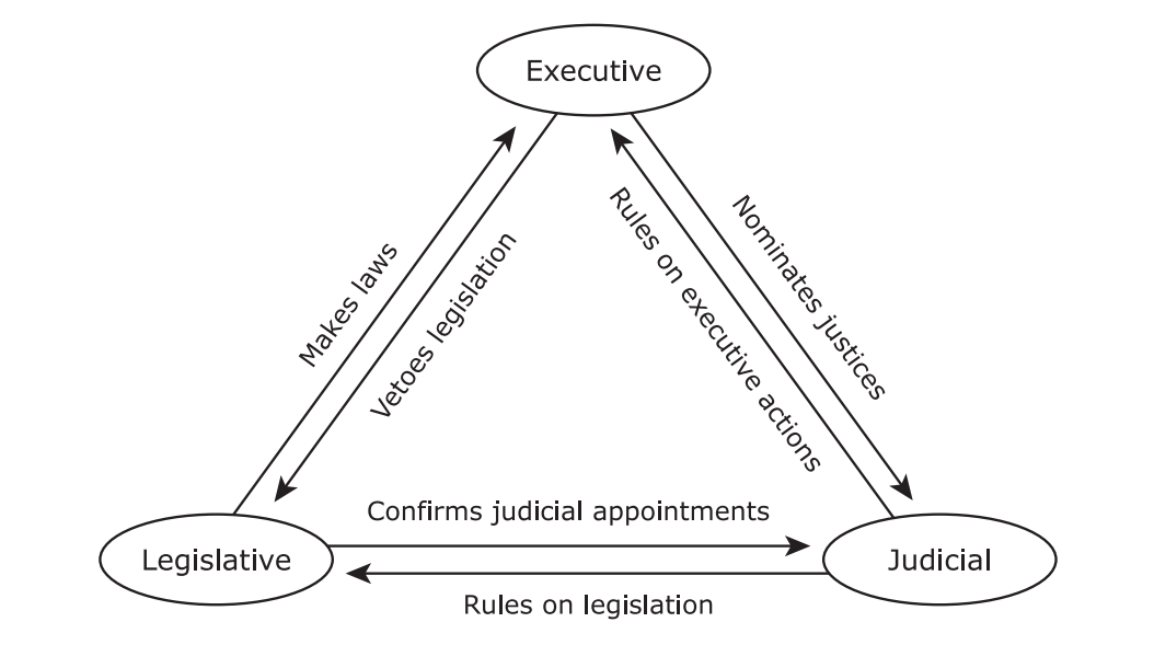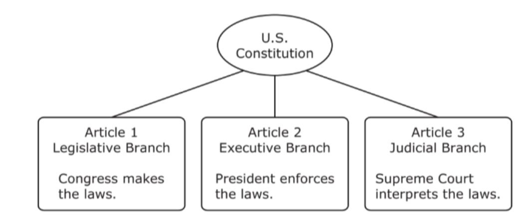 Which principle outlined in the U.S. Constitution is represented by this diagram AND what is its purpose? Think about the question carefully. Then record your answer in the box provided.