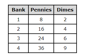 9. The table below shows the number of coins in four piggy banks.