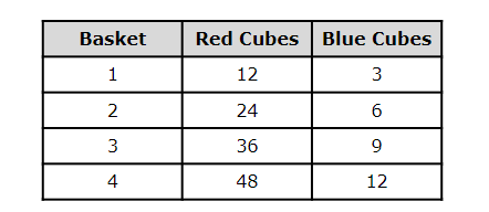 2. A teacher is doing a lesson on perimeter, using centimeter cubes. The table below shows the number of centimeter cubes of different colors in four different baskets.