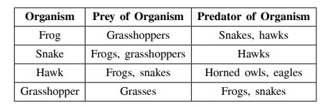 The table shows the relationships of some organisms in the Texas Hill Country habitat.