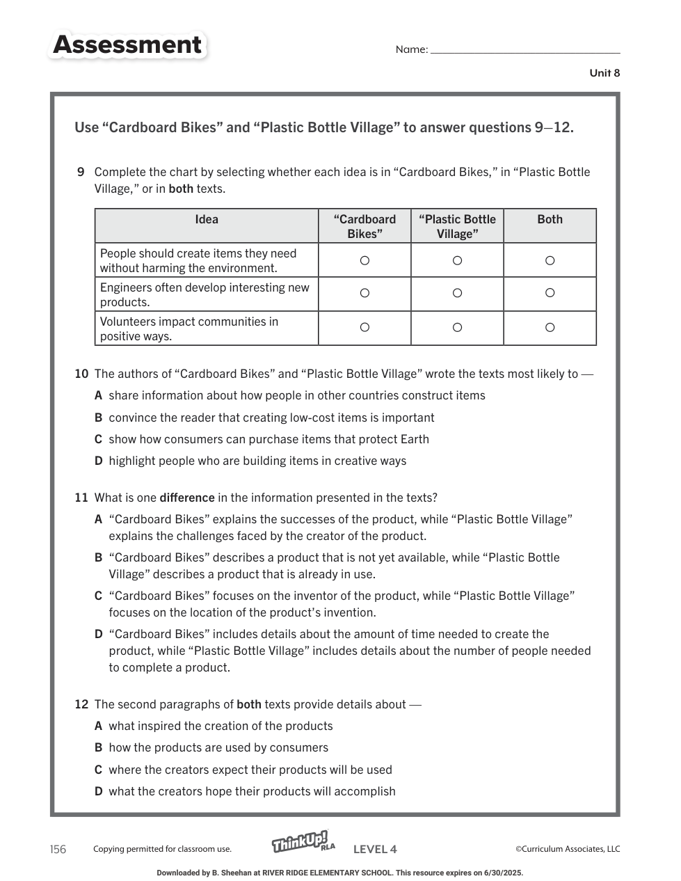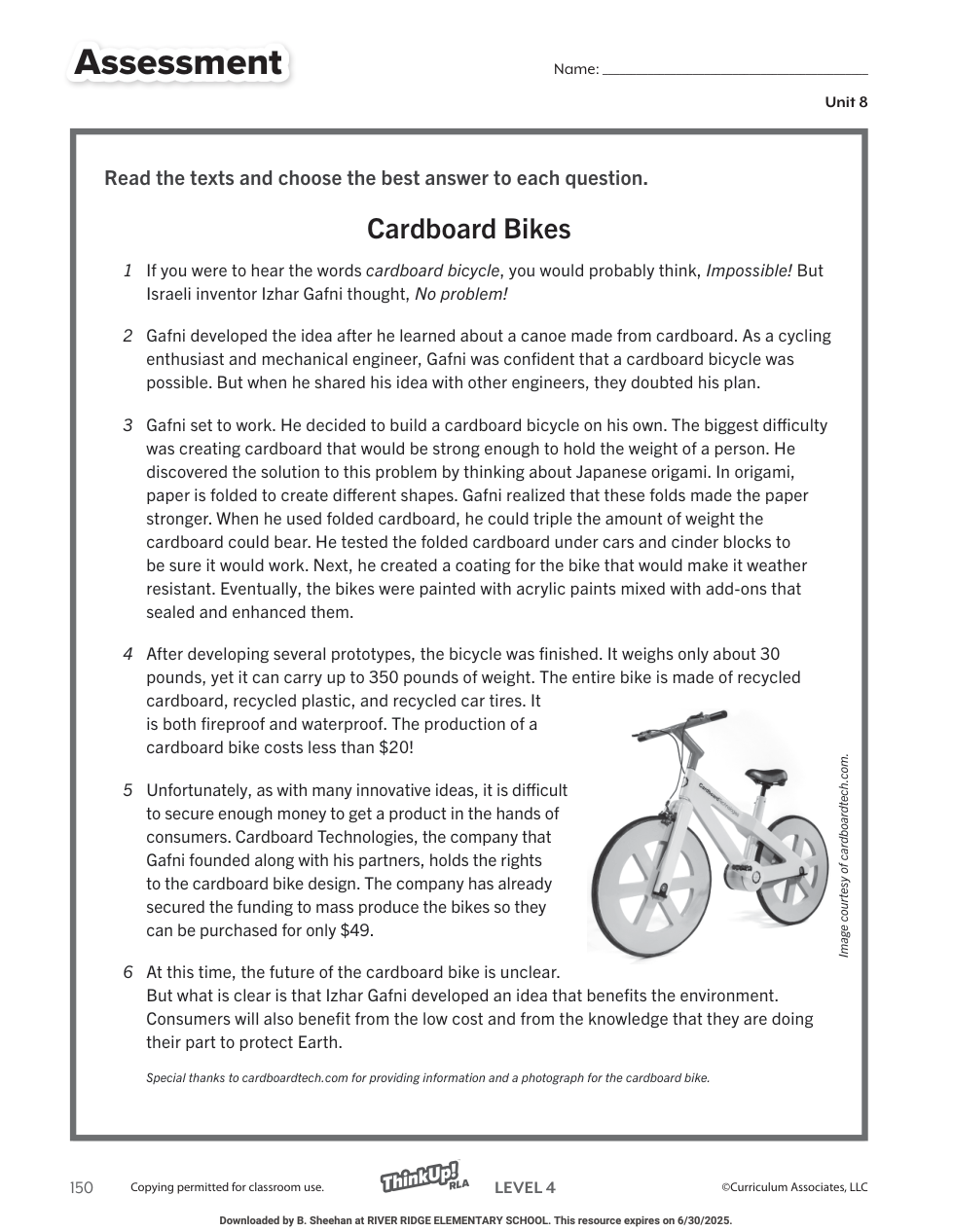 Use "Cardboard Bikes" and "Plastic Bottle Village" to answer questions 9-12