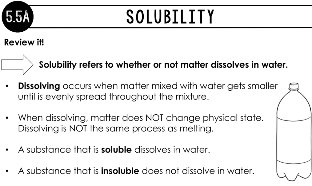 Students set up four beakers of water. They conducted an investigation in which they added a different substance to each of the four beakers and stirred for 2 minutes.