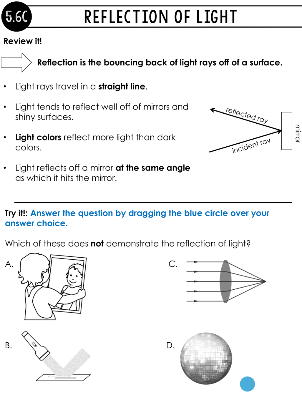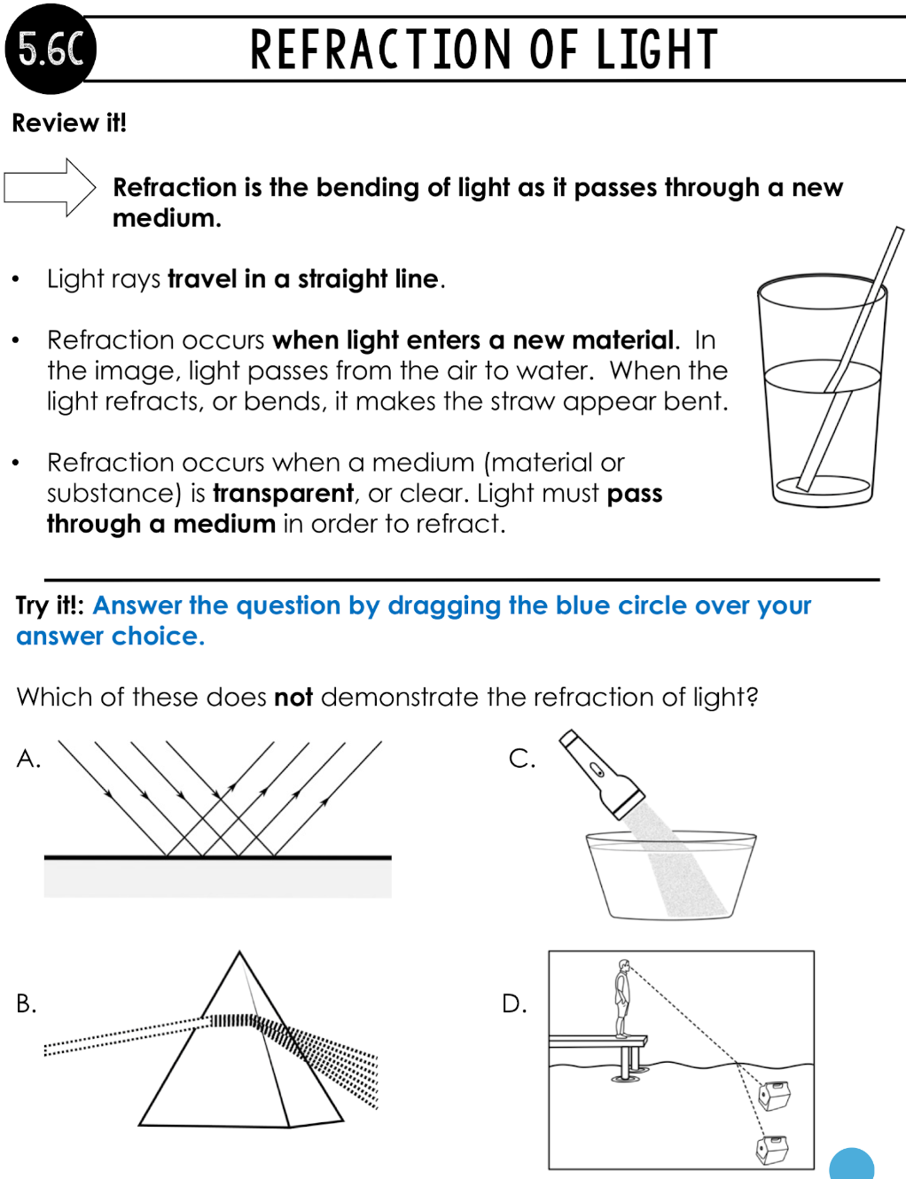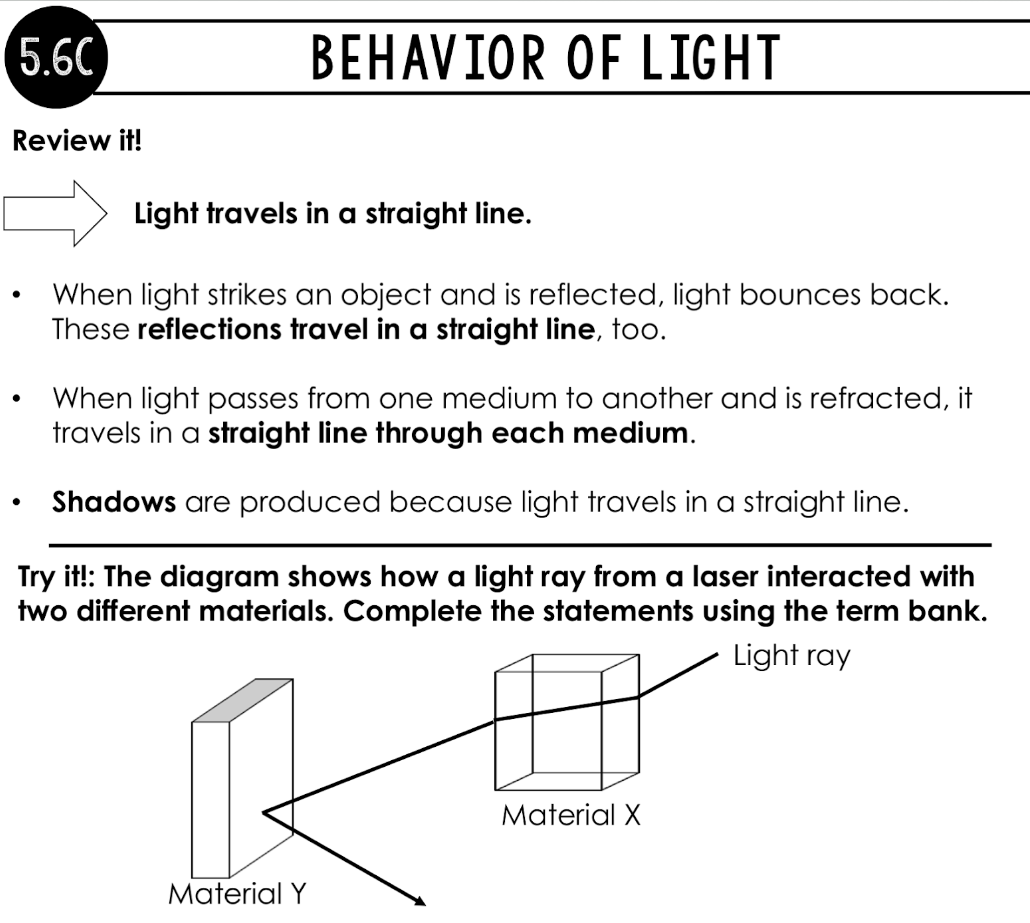 3. Even as the light ray reflected and refracted, light always ____________ in a _____________ line.