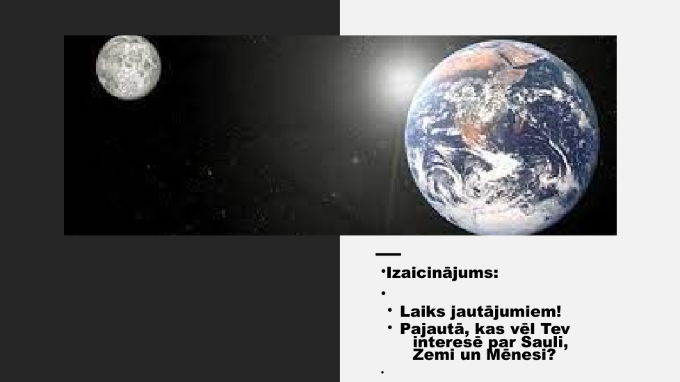Uzraksti 3 jautājumus, ko vēl Tu gribētu uzzināt par Zemi, Sauli un Mēnesi!