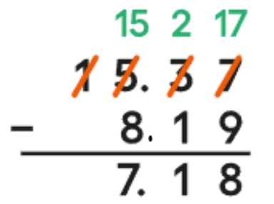 Here is how Elena found the value of 15.37 − 8.19