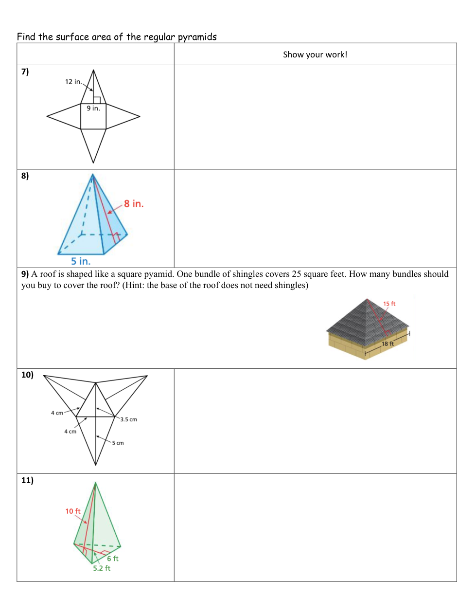 I will know I am successful when:*I can find the surface area of prisms and pyramids.