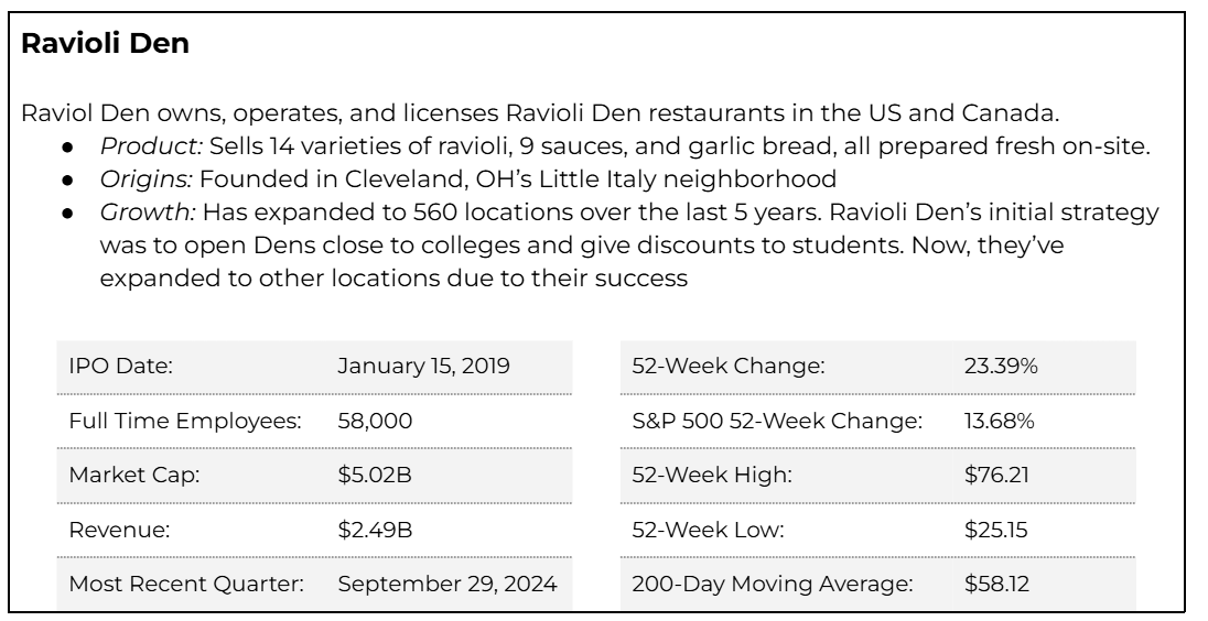 • You decide to invest in Ravioli Den. Let’s see what you decide next and how your investment performs!