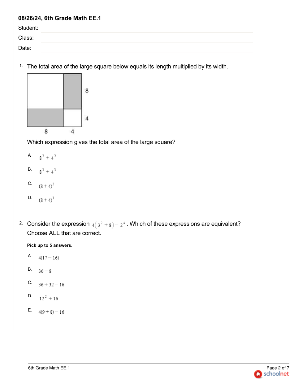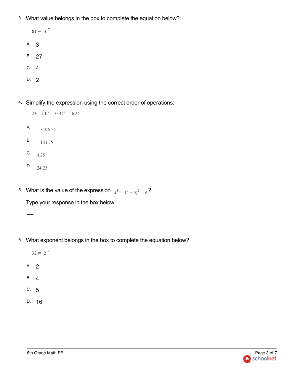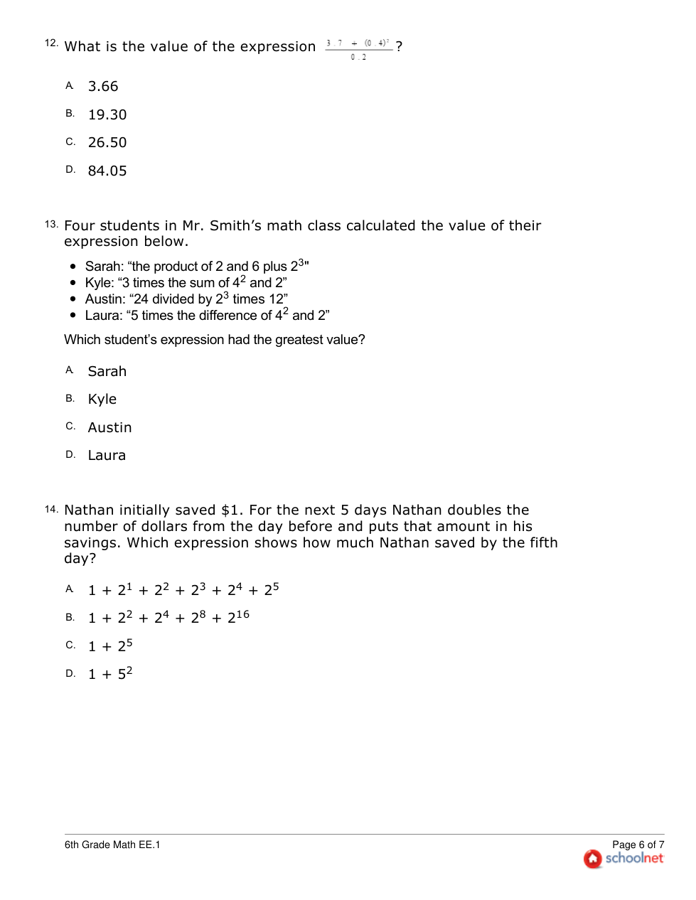 6th Grade Math EE.1
