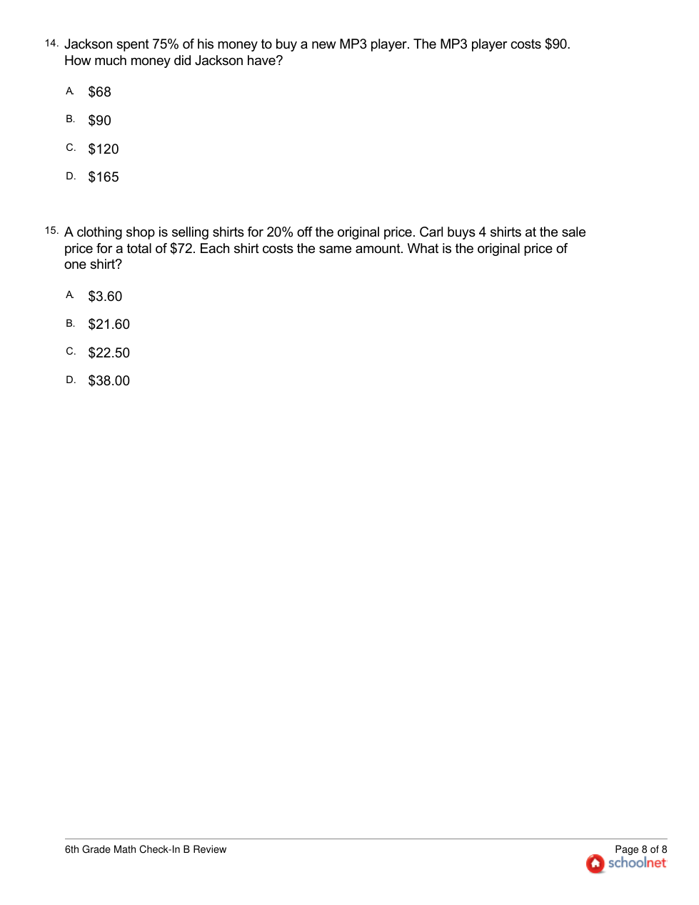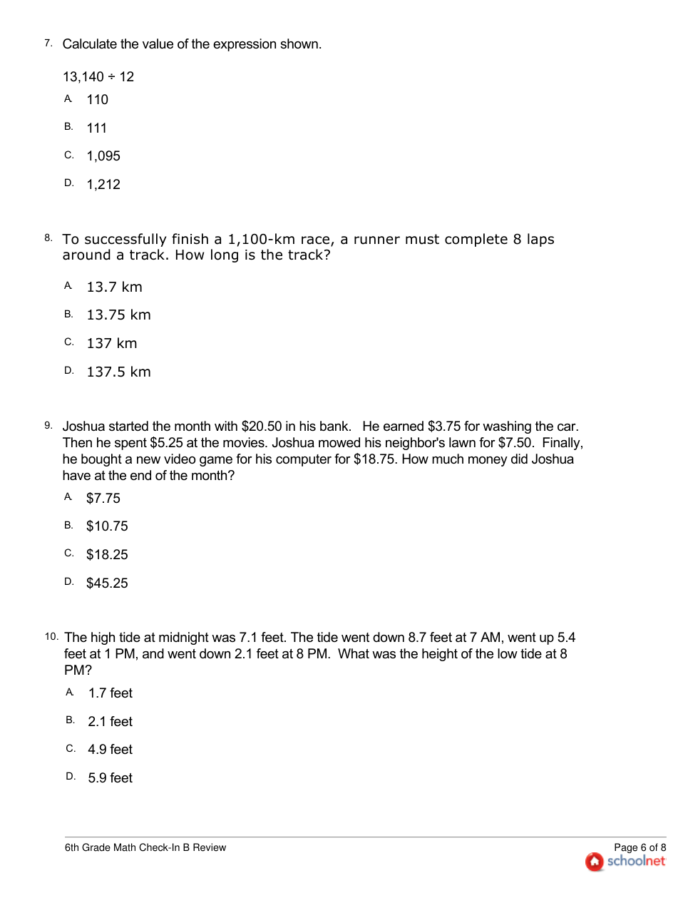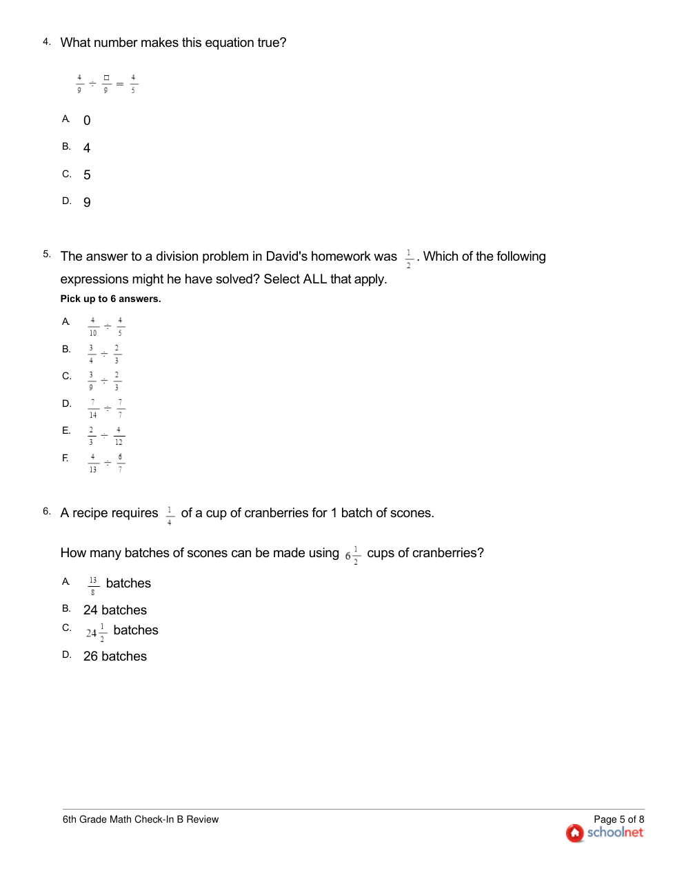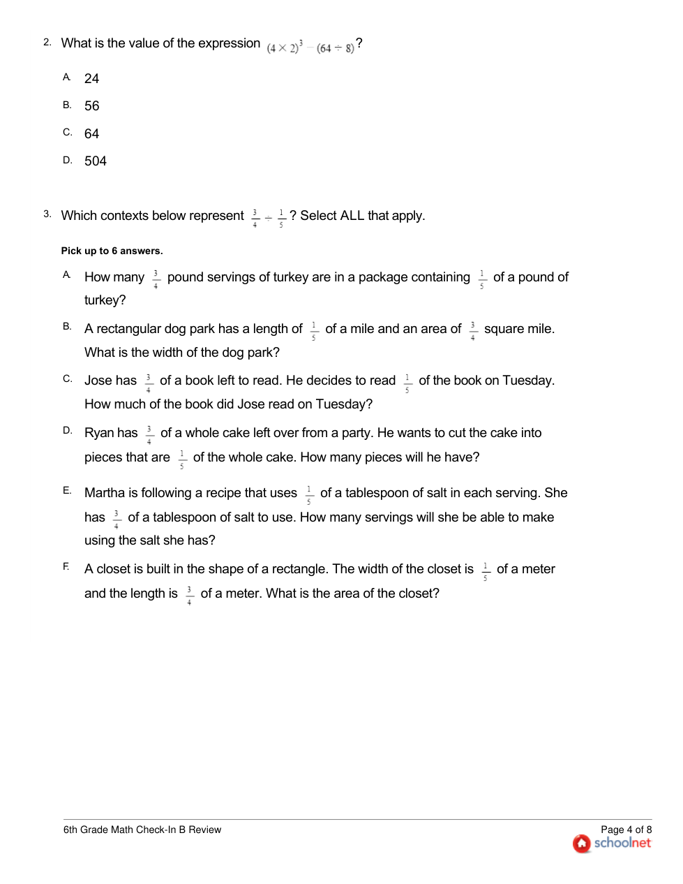 6TH Grade Math Check-In B Review