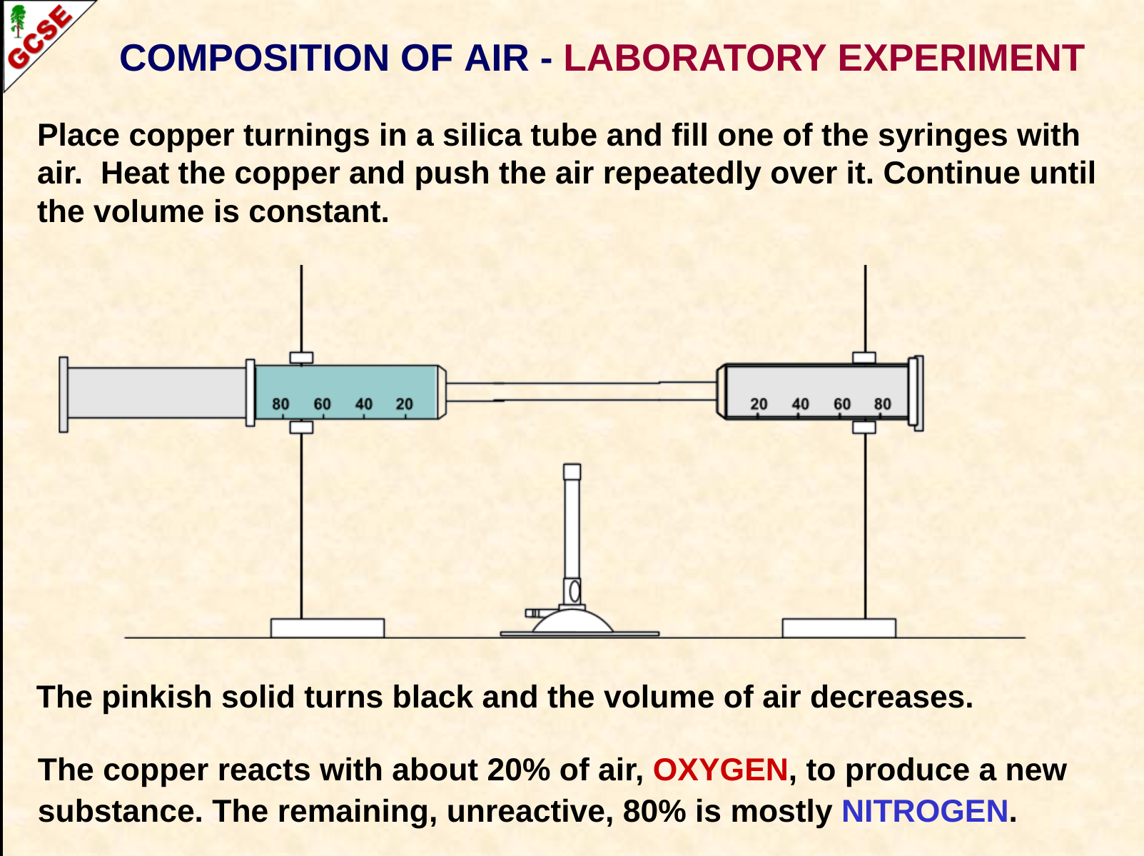 If we started with 100 cm3 of air what volume of nitrogen would we end up with?