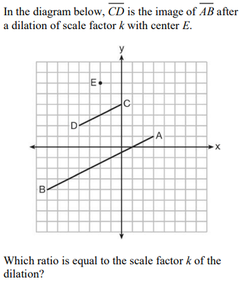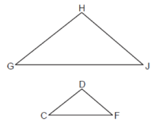 In the diagram below, triangle GHJ is dilated by a scalefactor of 1/2 centered at point B to map onto triangleCDF.
