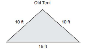 The Rivera family bought a new tent for camping.Their old tent had equal sides of 10 feet and a floorwidth of 15 feet, as shown in the accompanyingdiagram.