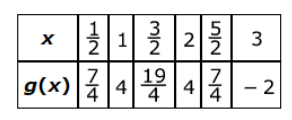 The table represents some points on the graph of quadratic function g.