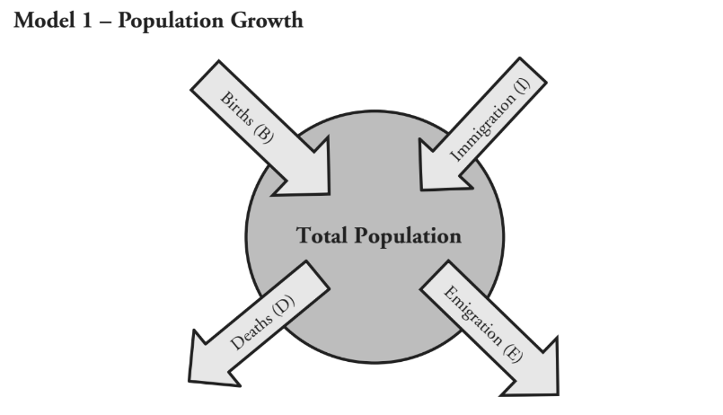 Name two factors that cause an increase in the population size.
