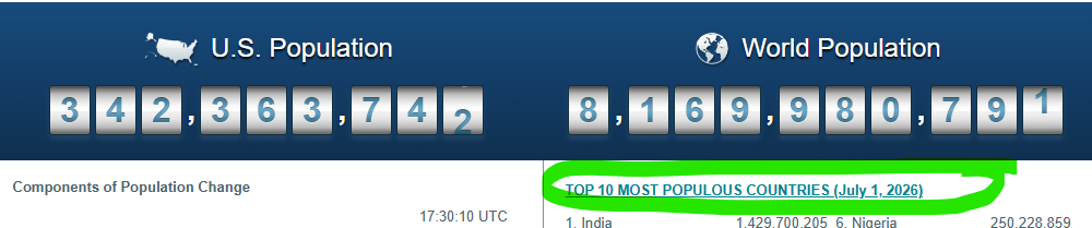 What is the estimated population of the United States? 2026