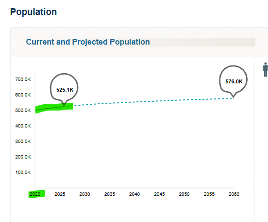 As of today's date and that of 2020, how much has the overall population numbers changed? Use +/- signs next to total number to show increase or decrease. You may need to estimate the 2020 number.
