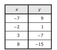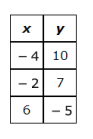The table represents some points on the graph of a linear function.