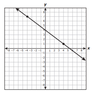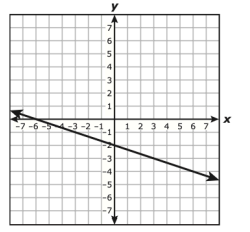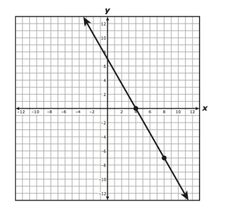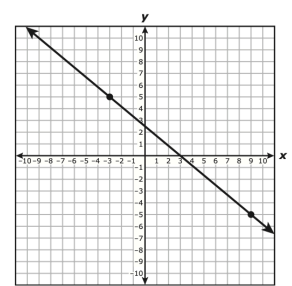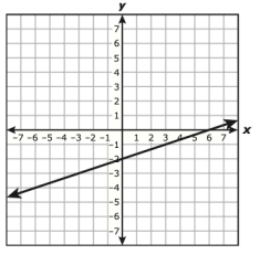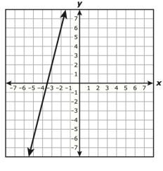 The graph of a line is shown on the grid. The coordinates of both points indicated on the graph of the line are integers.