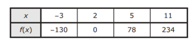 The table represents some points on the graph of linear function f.