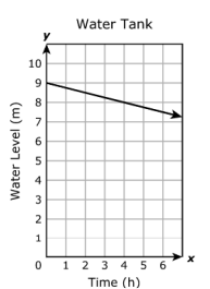 The water level in a tank is changing at a constant rate. The graph shows the relationship between time in hours, x, and the water level in meters, y.