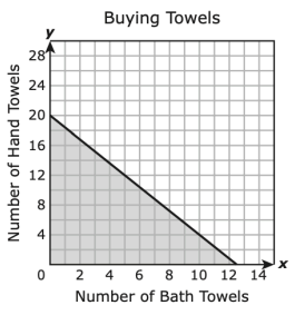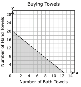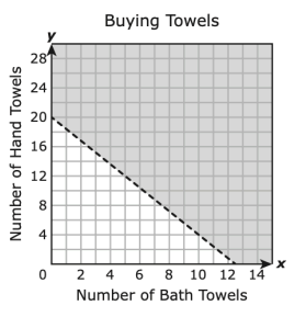 A customer is buying bath towels and hand towels and can spend no more than $100. Each bath towel costs $8, and each hand towel costs $5. The inequality 8x + 5y \leq 100 represents all possible combinations of x, the number of bath towels, and y, the number of hand towels the customer can buy.