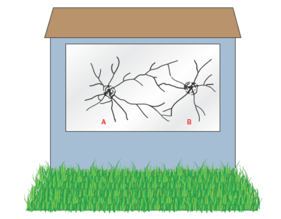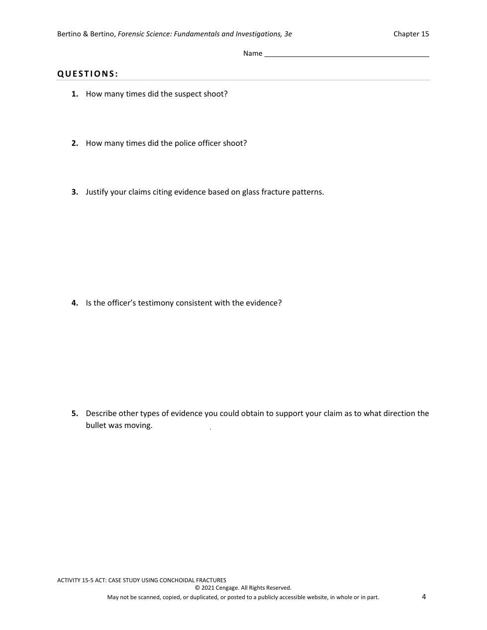 Two bullets penetrated the window of an old shed. Study the fracture patterns in the following diagram, and answer the following questions: