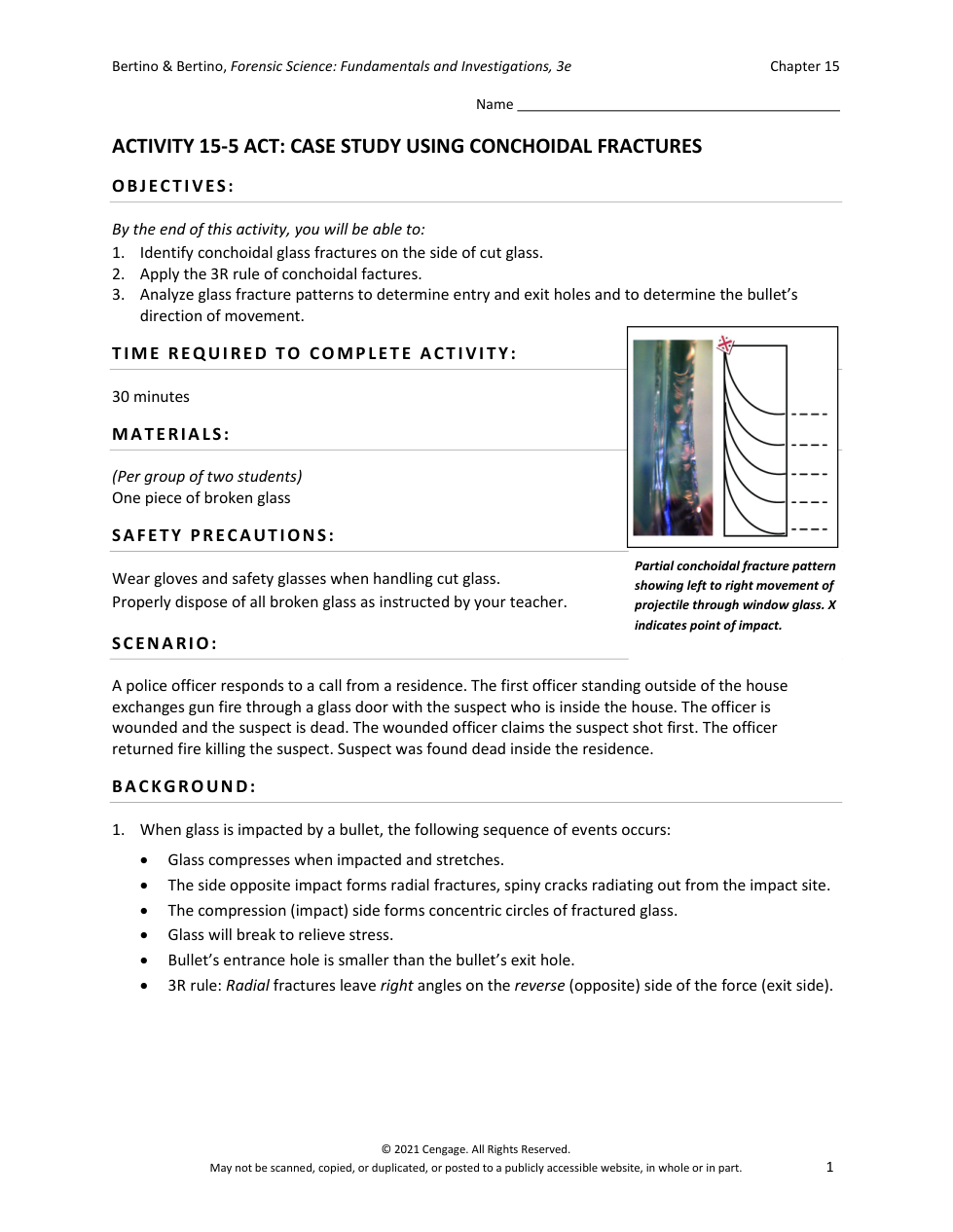CREATIVE WRITING:Write a crime-scene case study or scenario that involves the glass fracture pattern evidence that is consistent with the sketches in the activity or that is consistent with the glass fracture pattern you created in Part B.