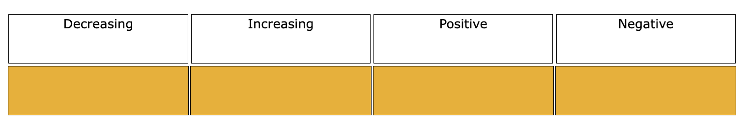 Place (click and drag) each interval into the column that describes the function on that interval.