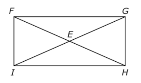 In rectangle FGHI, diagonals \overline{FH} and \overline{GI} intersect at E.
