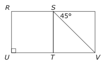 Square RSTU is inside trapezoid RSVU. What is the measure, in degrees, of angle VSR?