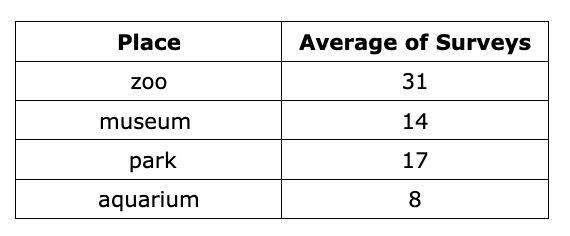 A state representative took several random surveys of adults to find which place they visited most frequently. The average of all of the surveys is shown in this table.